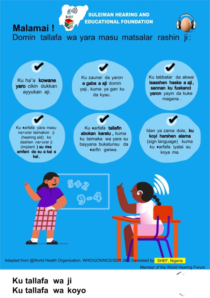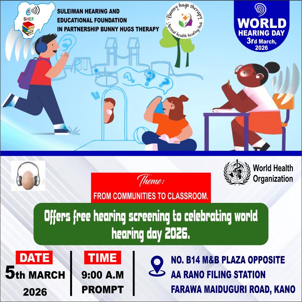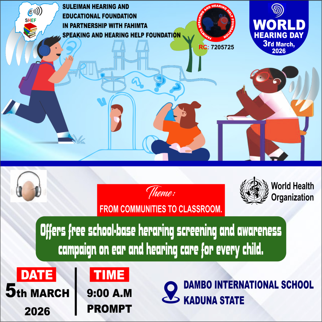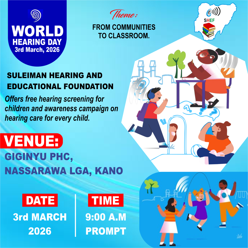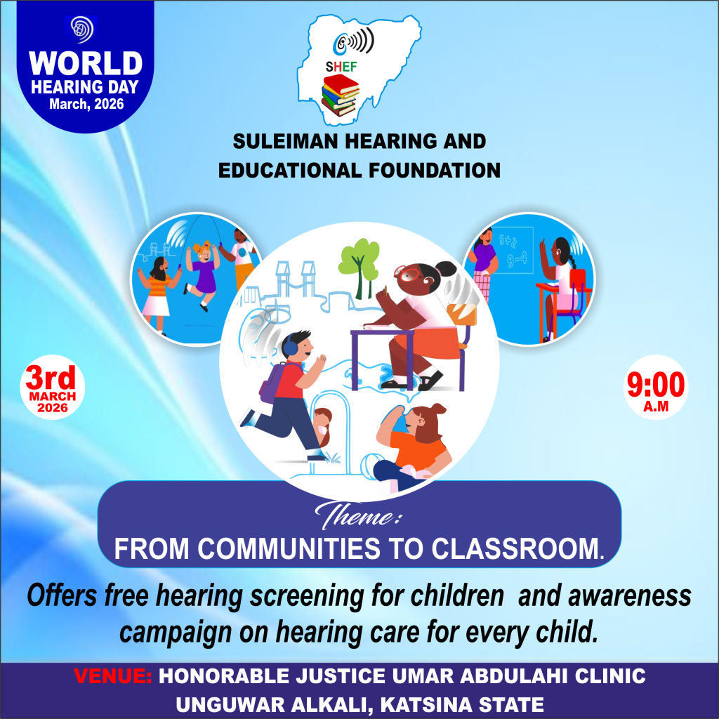 In commemoration of World Hearing Day (WHD) 2026, observed globally every 3rd of March and led by the World Health Organization (WHO), the Suleiman Hearing and Educational Foundation (SHEF) has planned a series of impactful activities across different states in Nigeria. These activities aim to promote ear and hearing care awareness, prevention of hearing loss, and early detection among children and the general public.